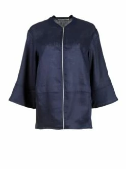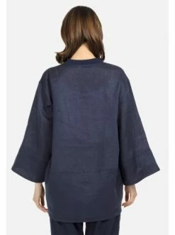 Offen geschnittene Leinenbluse. Der ursprüngliche lockere Schnitt des Modells kann sowohl zu einem eigenständigen Akzent als auch zu einem Teil von Layering-Looks werden. Modernes Design mit viel Komfort. – Lose Passform – 7/8-Ärmel – Reißverschluss – Gerader SaumGrößenhinweisfällt größengetreu aus