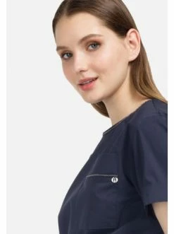 Ein Klassiker der Garderobe mit einem neuen Twist. Diese Baumwollbluse mit einem Hauch von Polyester und Elasthan hat eine eng anliegende Passform und originelle Details, die sie zur perfekten Basisschicht für jeden Look machen. – Schlanke Passform – Rundhalsausschnitt – Aufknöpfen – aufgesetzte Tasche – Taster oben Taster – Button-up-KnopfverschlussGrößenhinweisfällt größengetreu aus