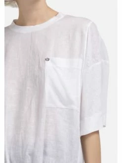 Einfache und elegante Leinenbluse. Die lockere Passform und der natürliche Stoff machen diese Bluse perfekt für einen leichten Tageslook. Komfort für jeden Tag. – Lose Passform – Kurzarm – Asymmetrischer Saum – Aufgesetzte BrusttascheGrößenhinweisfällt größengetreu aus