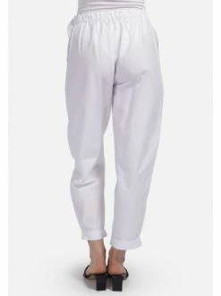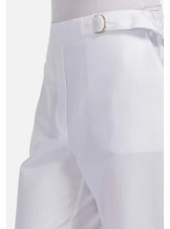 Ein moderner Stil für mehr als eine Saison. Bequeme Baumwollhosen sind eine neue Version des klassischen Stils. Das Outfit kann mit den klassischen Pumps vervollständigt werden. – Gerader Schnitt – Zwei Seitentaschen – Manschette unten – Dekorative Schnalle – Saum mit BündchenGrößenhinweisfällt größengetreu aus