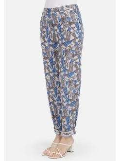 Free Style Hose aus Viskose. Der originelle Druck, die Falten an der Unterseite und der elastische Gürtel machen dieses Modell sowohl stilvoll als auch bequem. Die Hosen können mit frei geschnittenen Blusen, Basis-T-Shirts und lakonischen Jacken kombiniert werden. – Elastischer Bund – Zwei Seitentaschen – Gerade Hosen – Geometrischer DruckGrößenhinweisfällt größengetreu aus