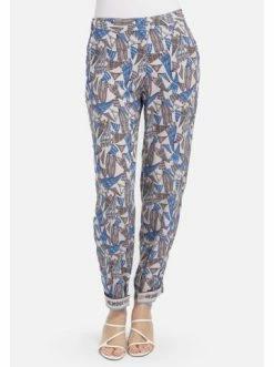 Free Style Hose aus Viskose. Der originelle Druck, die Falten an der Unterseite und der elastische Gürtel machen dieses Modell sowohl stilvoll als auch bequem. Die Hosen können mit frei geschnittenen Blusen, Basis-T-Shirts und lakonischen Jacken kombiniert werden. – Elastischer Bund – Zwei Seitentaschen – Gerade Hosen – Geometrischer DruckGrößenhinweisfällt größengetreu aus