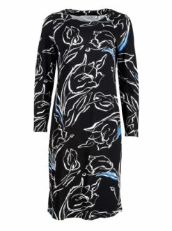 Kleid mit Signaturdruck. Gerader Schnitt. Lange Ärmel. Rundhalsausschnitt. Kein Reißverschluss. Keine Taschen. Sie können eine Vielzahl von Accessoires verwenden, um den Look zu vervollständigen. – Gerader Schnitt – Langarm – Rundhalsausschnitt – Ohne SchnalleGrößenhinweisfällt größengetreu aus