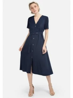 Schönes Kleid aus leichter Viskose. Mit Knöpfen und Gürtel kann die Taille nach Wunsch betont werden. Die Midi-Länge macht es einfach, begeistert durch den Sommer zu gehen, – Taillenkleid – Geknöpft – Länge – midi – Kurzarm – Taillenband KleidGrößenhinweisfällt größengetreu aus