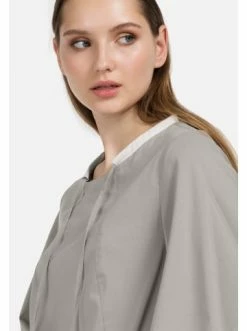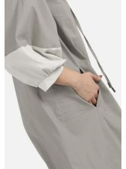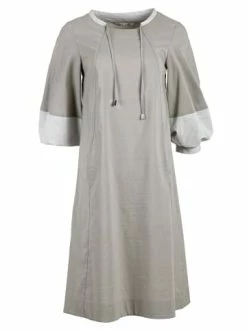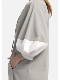 Locker geschnittenes Kleid. Hergestellt aus leichtem Webstoff. Voluminöse lange Ärmel. Für Büro und Alltag geeignet. – Ballon-Ärmel – Seitentaschen – A-Silhouette – KontrastverarbeitungGrößenhinweisfällt größengetreu aus