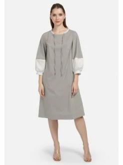 Locker geschnittenes Kleid. Hergestellt aus leichtem Webstoff. Voluminöse lange Ärmel. Für Büro und Alltag geeignet. – Ballon-Ärmel – Seitentaschen – A-Silhouette – KontrastverarbeitungGrößenhinweisfällt größengetreu aus