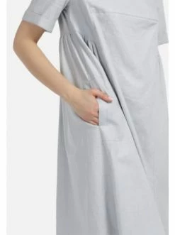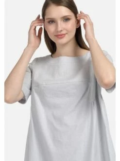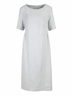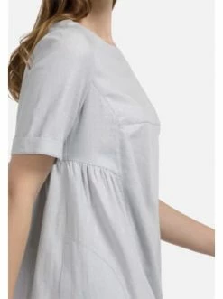 Hellgraues Kleid aus Leinen mit lockerem Schnitt. Darin werden Sie sich auch bei heißestem Wetter wohl fühlen. Dank der Raffungen unter der Brust sitzt das Kleid komfortabel und fühlt sich schwerelos an. Das Kleid ist nicht gefüttert, was bei heißem Wetter toll ist. Dieses Modell lässt sich mit Pumps und Sandalen kombinieren. – Aus luftigem Flachs – Gerade Silhouette – Ungefüttert – Mit RaffungenGrößenhinweisfällt größengetreu aus