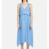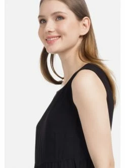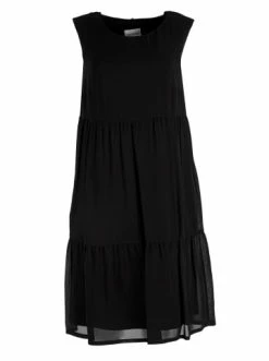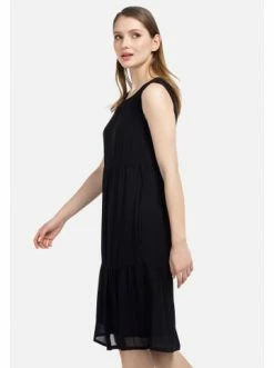 Elegantes Midi-Sommerkleid aus Chiffon. Jede Stufe ist mit kleinen Raffungen verschönert. Ideal für eine feminine Silhouette. – Gestuftes Sommerkleid – Ärmellos – Seitliche Eingrifftaschen – Leicht A-linienförmige SilhouetteGrößenhinweisfällt größengetreu aus