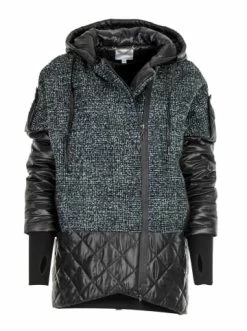 Locker geschnittener Anorak. Die Jacke besteht aus zwei verschiedenen Stoffen, die sich in ihrer Struktur voneinander unterscheiden und super ergänzen. Dieses Modell passt perfekt zu Hosen und Jeans, aber auch zu Midikleidern. – Versetzter Reißverschluss – Mit Daumenlöchern – Kapuze mit Tunnelzug – Stepp-Look an Ärmeln und Kapzue – Windstopper an den ÄrmelnGrößenhinweisfällt größengetreu aus