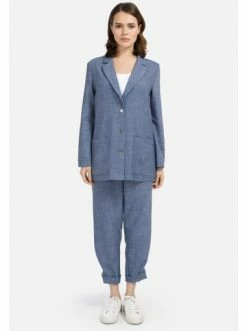 Locker geschnittene Jacke mit englischem Kragen und Knopfverschluss. Das Gewebe knittert nicht und hält seine Form. Die Jacke wird eine hervorragende Ergänzung zu Hosen und geraden Röcken sein und eine anspruchsvolle Silhouette schaffen. Mit der passenden Hose entsteht ein harmonischer Look. – Aufgesetzte Taschen – Dünne Schulterpads – Knopf-VerschlussGrößenhinweisfällt größengetreu aus