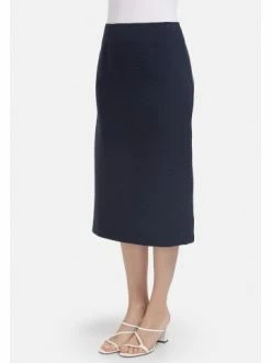 Midi-Rock, figurbetont, mit Schlitz hinten. Ein schönes Basic für jeden Tag, besonders schick mit einem Blazer. – Bleistiftrock – Strukturierter elastischer Stoff – Schnitt, der die Figur betont – Gummibund – ReißverschlussGrößenhinweisfällt größengetreu aus