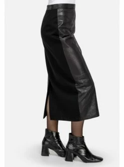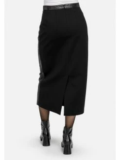Rock mit Reißverschluss. Kombination von Materialien – Kunstleder und Strickstoff. Dekorative Nähte. Ohne Taschen. Tragen Sie dazu ein Business-Sakko und Schuhe mit Absatz. – Gerader Schnitt – Leder-Optik – Bleistift-Schnitt – Verdeckter ReißverschlussGrößenhinweisfällt größengetreu aus