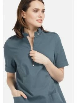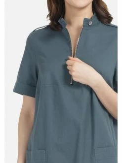 Kleid aus gekochter Baumwolle in der Farbe beige. Kleid mit Rundhalsausschnitt, Stehkragen und kurzen Ärmeln. Mit aufgesetzten Taschen und einem silberfarbenen Reißverschluss. Das Modell ist eine tolle Option, um einen lässigen Look zu kreieren. Hervorragend kombiniert mit offenen Schuhen oder Turnschuhen. – Gerade Silhouette – Rundhalsausschnitt – Reißverschluss – Gekochte BaumwolleGrößenhinweisfällt größengetreu aus