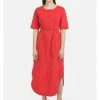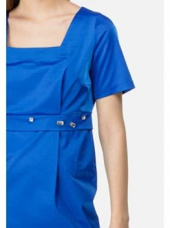 Gerade geschnittenes Kleid aus Baumwolle und Polyester. Der Akzent in der Taille schafft eine wohlproportionierte, feminine Silhouette. Das Kleid ist ideal für Tages-Looks, aber auch für formellere Anlässe. – Karree-Ausschnitt – Geknöpfte Schleife – Kurze Ärmel – Leicht Tailliert – Klassische LängeGrößenhinweisfällt größengetreu aus