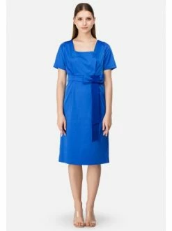 Gerade geschnittenes Kleid aus Baumwolle und Polyester. Der Akzent in der Taille schafft eine wohlproportionierte, feminine Silhouette. Das Kleid ist ideal für Tages-Looks, aber auch für formellere Anlässe. – Karree-Ausschnitt – Geknöpfte Schleife – Kurze Ärmel – Leicht Tailliert – Klassische LängeGrößenhinweisfällt größengetreu aus