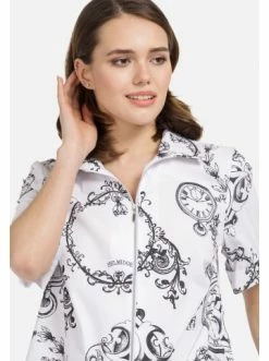 Originaldruck und glatte Textur. Diese Bluse mit gerader Silhouette aus natürlicher Baumwolle mit synthetischen Fasern wird ein unersetzliches Element Ihrer Garderobe werden. – Reißverschluss – Asymmetrischer Boden – Abgerundeter Saum – Lose PassformGrößenhinweisfällt größengetreu aus