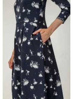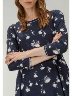 Midikleid mit Rundhalsausschnitt. Gekürzte gerader 7/8-Ärmel. Unten ausgestellt mit leichten Falten. Zartes und feminines Modell, das ihren Freizeitlook perfekt ergänzt: Klassischer Look mit Stiletto-Absätzen. Für einen superaktuellen Look vervollständigen Sie das Bild mit Mary-Jane-Schuhen oder hohen Stiefeln im Militärstil. – 7/8 Ärmel – Eine feminine Passform – Rundhalsausschnitt – Knopflos – PrintGrößenhinweisfällt größengetreu aus