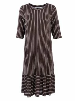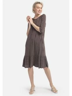 Große Größen HELMIDGE Druckkleid In Gestreiftem Dessin In Braun Günstig Kaufen