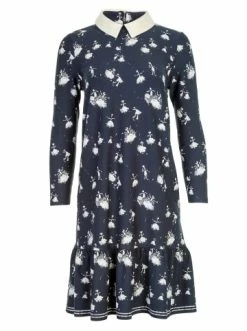 Midikleid mit kontrastierendem Kragen. Zartes und feminines Modell, das den Freizeitlook ergänzt. Lange Ärmel und Rüschen am unteren Ende. – Weißer Kragen – Button-Up – Midi-Länge – Lose Passform – Knopfleiste am RückenGrößenhinweisfällt größengetreu aus