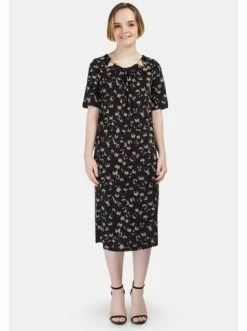 Große Größen HELMIDGE Druckkleid Midikleid In Dunkel Blau Beige Günstig Kaufen