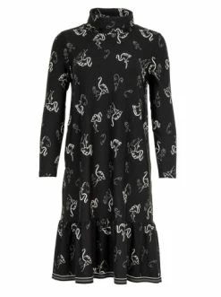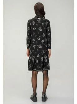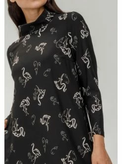 Midikleid mit hohem Stehkragen. Der Designer-Print mit abstrakten Flamingos unterstreicht Ihre Weiblichkeit und Verspieltheit. Volantbesatz am Saum. Ein zartes und feminines Modell, das Ihren Freizeitlook ergänzen wird. Kombinieren Sie ihn mit militärisch inspirierten Stiefeln oder Brogues zum Schnüren für einen super aktuellen Look. – Lose Passform – Flamingo-Druck – Volant am Saum des Kleides – Weiches Viskosegewebe – Ohne VerschlussGrößenhinweisfällt größengetreu aus