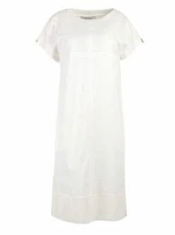 Kleid aus gekochter Baumwolle in der Farbe beige. Kleid mit Rundhalsausschnitt, Stehkragen und kurzen Ärmeln. Mit aufgesetzten Taschen und einem silberfarbenen Reißverschluss. Das Modell ist eine tolle Option, um einen lässigen Look zu kreieren. Hervorragend kombiniert mit offenen Schuhen oder Turnschuhen. – Baumwolle – Gerade Silhouette – Rundhalsausschnitt – Kurzarm – UngefüttertGrößenhinweisfällt größengetreu aus