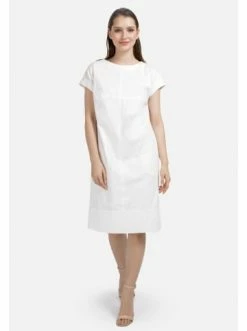 Kleid aus gekochter Baumwolle in der Farbe beige. Kleid mit Rundhalsausschnitt, Stehkragen und kurzen Ärmeln. Mit aufgesetzten Taschen und einem silberfarbenen Reißverschluss. Das Modell ist eine tolle Option, um einen lässigen Look zu kreieren. Hervorragend kombiniert mit offenen Schuhen oder Turnschuhen. – Baumwolle – Gerade Silhouette – Rundhalsausschnitt – Kurzarm – UngefüttertGrößenhinweisfällt größengetreu aus