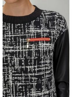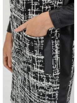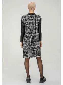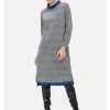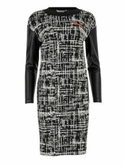 Midilanges Kleid mit monochromem Muster. Dieses Modell ist aus Stoff gefertigt, der seine Form gut hält und nicht knittert. Das Kleid wird durch kontrastierende Ärmel und Kragen ergänzt. Ausgezeichnete Ergänzung zu einem Look im lässigen Stil. – Kleid in Midilänge – Gerader Schnitt – Abgerundeter Ausschnitt – Kontrastierende Ärmel – Weiches GestrickGrößenhinweisfällt größengetreu aus