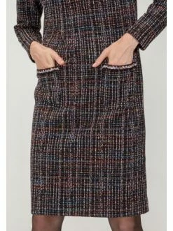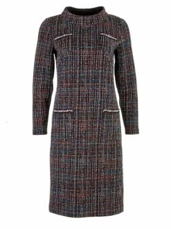 Kleid in Midilänge mit Tweedmuster. Gerade geschnitten aus einem dicken Stoff, der seine Form gut hält. Perfekter Look fürs Büro und zum Ausgehen. Kombinieren Sie das Kleid mit klassischen Pumps mit Stiletto-Absatz oder mit Oxfords mit dicken Sohlen für einen legeren Look. – Gerader Schnitt – Rundhalsausschnitt – Lange Ärmel – Stoff mit Tweed-Effekt – Büro-LookGrößenhinweisfällt größengetreu aus