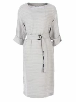 Midi-Kleid, gerade geschnitten, in unterer Knielänge. Ein dekorativer Bindergurt unterstreicht schmeichelhaft die Taille. Runder Auschschnitt. Ärmel in 3/4 Länge mit weichem Umschlag. Originelle Logo-Elemente. Einfaches, jedoch stillvolles Kleid für jeden Tag. – Midikleid mit geraden Schnitt – Rundhalsausschnitt – 3/4-Ärmel – Inklusive Gürtel – Weicher StoffGrößenhinweisfällt größengetreu aus