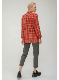 Hemdartige Bluse mit Karo-Muster. Ein vielseitiges Element für jede Garderobe! Langer Ärmelsaum und Umschlagbündchen. Englischer Kragen und zwei aufgesetzte Taschen auf der Brust. Sie wird mit originalen Designerknöpfen geschlossen. Außerdem hat sie zwei Seitentaschen mit Schlitzen. Kombinieren Sie dieses Modell mit Jeans oder Hosen in dunklen Farbtönen. – Englisches Halskragen – Seitentaschen – Knopf-Verschluss – aufgesetzte Taschen auf der Brust – Modischer KarodruckGrößenhinweisfällt größengetreu aus