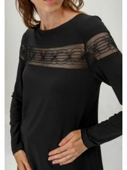 Pullover gerade geschnitten. Das Modell ist mit transparentem Netz mit Stickerei verziert. Ergänzt perfekt den Alltagslook mit Hosen, Jeans und Röcken. – Lange Ärmel – Weicher Stoff – Ohne Verschluss – Klassischer Schnitt – Transparente EinsätzeGrößenhinweisfällt größengetreu aus