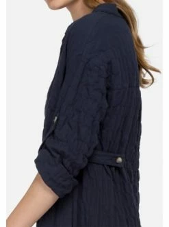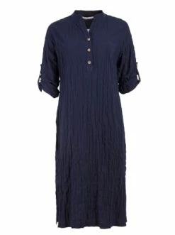 Das Kleid ist in einem edlen Dunkelblau aus Baumwolle gehalten. Ideal für Spaziergänge am Meer und in der Stadt bei warmem Wetter. An der Taille befinden sich an den Knöpfen Aufnäher, die die Taille der Trägerin betonen. – Kleid zum Knöpfen – Kein Futter – Gerade Silhouette – Knittereffekt bei StoffenGrößenhinweisfällt größengetreu aus