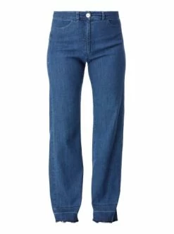Jeans mit geradem Bein, bequem hochtailliert. Reißverschluss mit Knopf, Taschen vorne und hinten. Klassischer Schnitt, weicher und elastischer Stoff. – Jeans mit geraden Schnitt – Knopfleiste mit Reißverschluss – Weicher Stretch-Stoff – Fünf TaschenGrößenhinweisfällt größengetreu aus