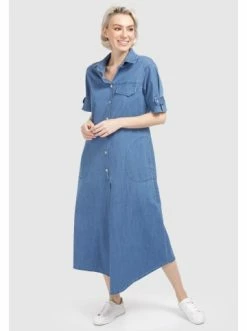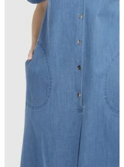Denim-Maxi-Langarm-Shirtkleid aus leichtem und weichem Stoff mit dem Zusatz von Eukalyptus-Lyocell, einem umweltfreundlichen Eukalyptus-Material. – Maxi-Länge – Kurzärmelig – A-Silhouette – Denim – Mit Hemdkragen – KurzarmGrößenhinweisfällt größengetreu aus