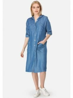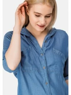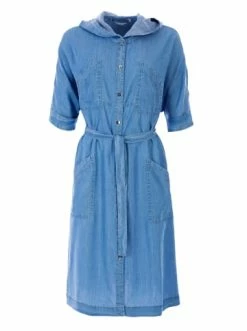 Dieses leichte Denimkleid in Midi-Länge ist ein Hit in Ihrem Kleiderschrank! Lockere Passform, mit Knöpfen und Kapuze. Ärmel in 3/4-Länge mit Manschetten. Die Brust- und Hüfttaschen verleihen diesem Kleid einen modischen Touch. Ein bequemes Kleid für jeden Tag, perfekt mit Sneakers und Turnschuhen. – Lockerer Schnitt – Gerade Form – 3/4 Ärmel mit Revers – Kapuze – Verschluss mit KnöpfenGrößenhinweisfällt größengetreu aus