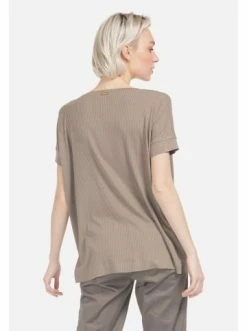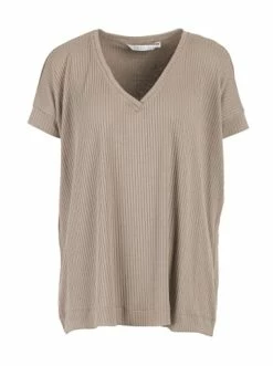 Locker geschnittene Bluse mit V – Ausschnitt. Das Modell ist aus elastischem Jersey mit Ripp-Struktur gefertigt. Gut kombinierbar sowohl mit klassischer als auch mit legerer Garderobe. – Gerader Schnitt – Kurzarm – Mit V-Ausschnitt – Asymmetrischer Saum – Lose PassformGrößenhinweisfällt größengetreu aus