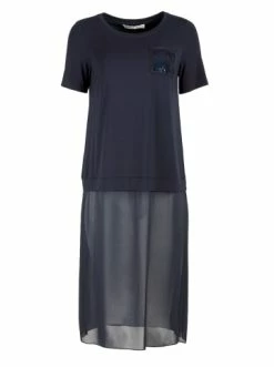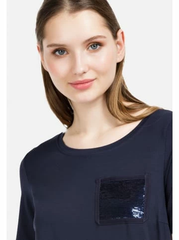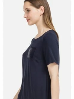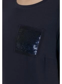 Bluse mit dekorativem, verlängertem Saum und paillettenbesetzter Brusttasche. – Gerader Schnitt – Rundhalsausschnitt – Kurzärmelig – Brusttasche mit Pailletten – Dekorativer SaumGrößenhinweisfällt größengetreu aus