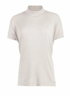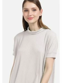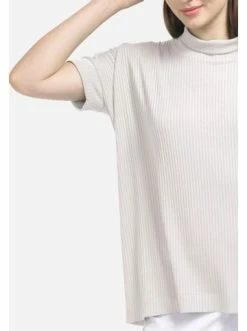 Kurzärmelige Strickbluse. Lose Silhouette. Abgerundeter Kragen. Ausgezeichnetes Element jeder Garderobe. – Sommerbluse – Kurzarm – Gerader Schnitt – StehkragenGrößenhinweisfällt größengetreu aus