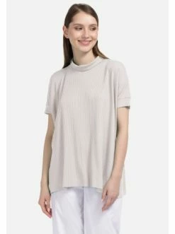 Kurzärmelige Strickbluse. Lose Silhouette. Abgerundeter Kragen. Ausgezeichnetes Element jeder Garderobe. – Sommerbluse – Kurzarm – Gerader Schnitt – StehkragenGrößenhinweisfällt größengetreu aus