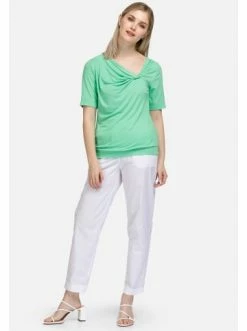 Große Größen HELMIDGE Kurzarmbluse Mit Knoten-Ausschnitt In Hellgrun Günstig Kaufen