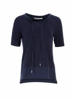 Kurzarmbluse, ohne Taschen. Runder Ausschnitt mit Kordelzug. Ein sportlicher, modischer und bequemer Casual-Look für jeden Tag. – Bluse im Sport-Chic Stil – Kurzarm – Rundhalsausschnitt – Ohne VerschlussGrößenhinweisfällt größengetreu aus