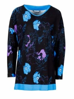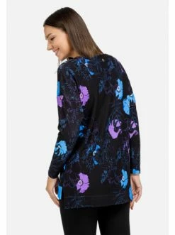 Longsleeve mit asymmetrischer Länge. Rundhalsausschnitt. Lange Ärmel. Schlitze an den Seiten. Originaldruck. Bluse wäre perfekt für alltägliche Ausflüge. – Rundhalsausschnitt – Druck-Motiv – Langarm – Asymmetrische LängeGrößenhinweisfällt größengetreu aus