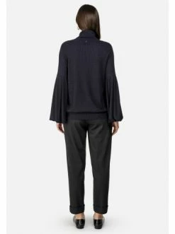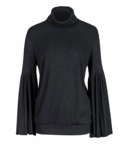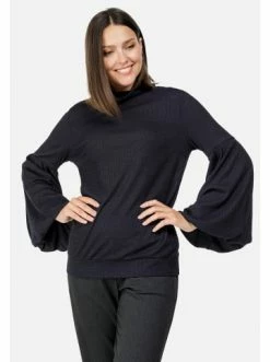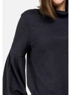 Gerade geschnittene Bluse mit geripptem Detail. Ballonärmel. Langarm. Keine Taschen. Kein Reißverschluss. Ideal für jeden Tag. – Gerader Schnitt – Langarm – Rundhalsausschnitt – Ohne VerschlussGrößenhinweisfällt größengetreu aus