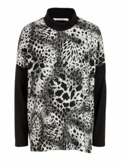 Oberteil mit Rollkragen und kontrastierendem Druck. Langarm. Stehkragen. Perfekt kombiniert mit klassischen Röcken oder Hosen. – Stehkragen – Langarm – Gestricktes GewebeGrößenhinweisfällt größengetreu aus