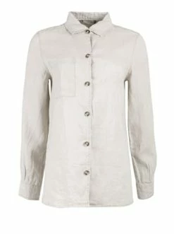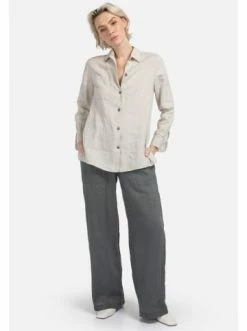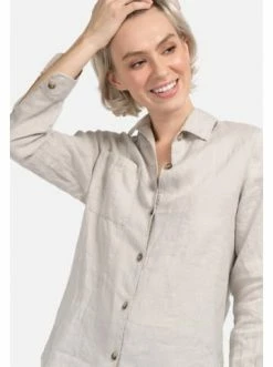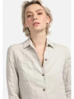 Locker geschnittene Leinenbluse. Dieses Modell mit langen Ärmeln zeichnet sich durch seinen Free-Style-Schnitt und eine aufgesetzte Tasche aus. Zeitlose Klassiker in neuer Interpretation. – Lose geschnitten – Knopf-Verschluss – Klassischer Kragen – Naturgewalktes LeinenGrößenhinweisfällt größengetreu aus