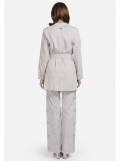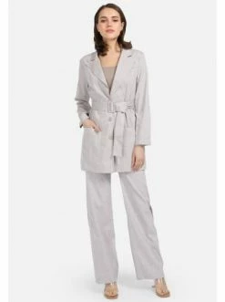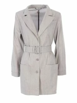 Verlängerter Blazer aus elastischem Leinen, gerade geschnitten, mit einem abnehmbaren Bindegurt, der die Taille schmeihelhaft hervorhebt. Große aufgesetzte Taschen, 3 Knöpfe. Ideal im Set mit der Hose, ein wunderschöner Look sowohl für sommerliche Bürotage, als auch für wichtige Anlässe. – Lange Jacke – Tragen von Gürtel optional – Lange Ärmel – Aufgesetzte Taschen – Ohne FutterGrößenhinweisfällt größengetreu aus