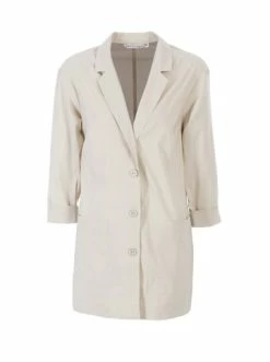 Verlängerter Blazer, gerade geschnitten, ungefüttert, aus dünnem, elatischem Stoff. Ärmel in 7/8 Länge mit Umschlag. Große aufgesetzte Taschen vorne. Komfortabler Büro-Look für die warme Jahreszeit. – Jacke mit geradem Schnitt – Knopfleiste – Langer Schnitt – 7/8 Ärmel – Aufgesetzte TaschenGrößenhinweisfällt größengetreu aus