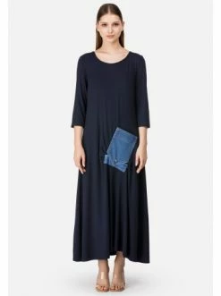 Dieses Kleid ist aus weichem Strickstoff gefertigt und hat die Länge bis zur Mitte des Knöchels. Die A-Silhouette des Modells schafft ein bequemes und lässiges Bild. – aufgesetzte Tasche – Maxi-Länge – Kurze ÄrmelGrößenhinweisfällt größengetreu aus