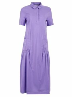 Gerade geschnittenes Kleid mit leicht ausgestelltem Rockteil aus Baumwolle mit einer Beimischung von Polyester und Elastan. Dieses Modell mit dezenter Taillierung hat einen leicht verengten Saum. Das Kleid ist mit originellen Raffungen an den Taschen verschönert. – aufgesetzte Taschen – Midi-Länge – Kurze Ärmel – Englisches HalsbandGrößenhinweisfällt größengetreu aus